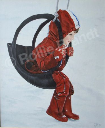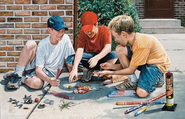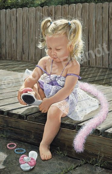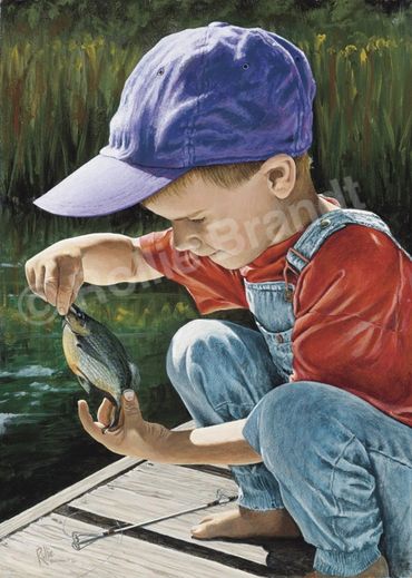 “You will not see me paint angelic children wearing clean white lace gowns in romantic rooms with flowered wallpaper. ‘My kids’ might be dirty, have a scratch on their knee or bandaid on their finger or wearing clothing that they’ve outgrown or not grown into yet! You’ll find them in their own back yard, on a dock fishing or somewhere in the neighborhood... having fun, getting into mischief, trying something new or mimicking an adult.