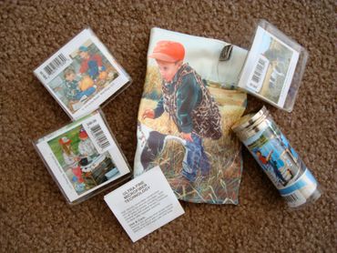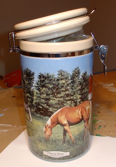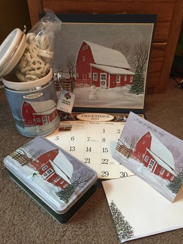 “It's always fun for me to see how my art gets used in products, thanks to the licensing department of my publisher, Wild wings! My work has appeared on apothecary jars, rear window truck films, lots of greeting cards, mugs, cups, plates, and trinket boxes. Pioneer Seed company used one of my barns on a Christmas tin. The Disabled American Vets are using my “Parade Partners” painting on one of their greeting cards.