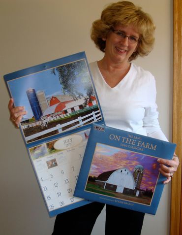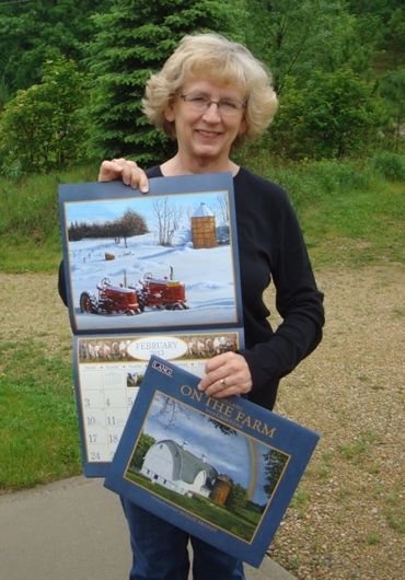 One of my best, longest running licensing products was a quality beautifully printed Lang Calendar. I was honored to have my paintings of real family farms published 7 years in my own “On the Farm” Calendar! I painted 12 new paintings yearly for each new calendar from 2009-2015! This is what kept me constantly seeking out new family farms to visit and paint. I met a lot of wonderful families and made new friends with that project and families enjoyed purchasing calendars for their friends and family with their own farm pictured!